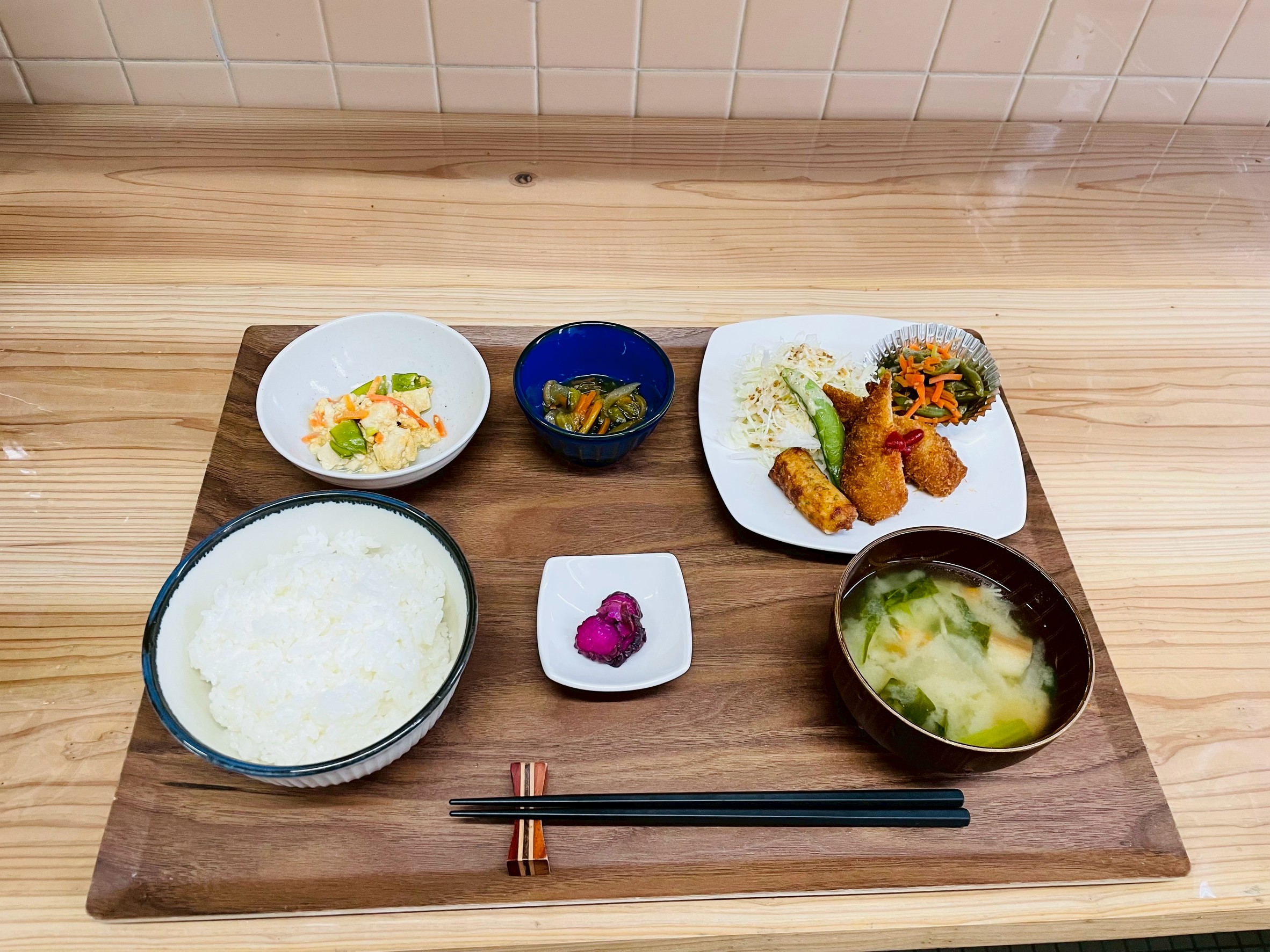 2025年11月12日 2025 11/12 食事 【昼食の献立】 ささみと竹輪の磯部揚げ いり豆腐 野菜の煮物 インゲンと人参のおかか炒め ご飯 汁物 食事 2025年11月11日 2025年11月13日